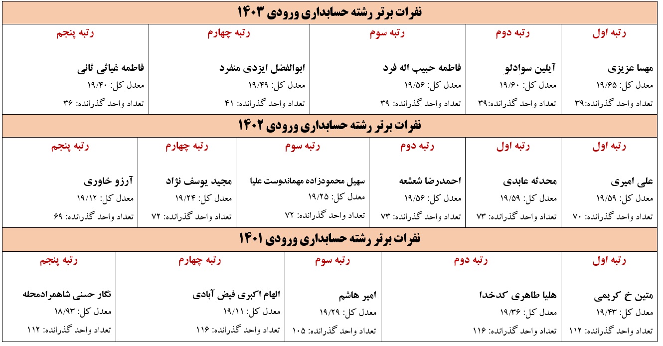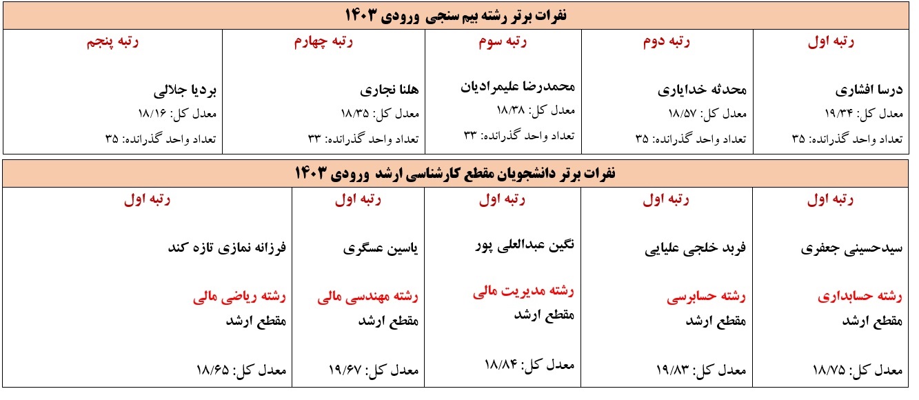 نفرات برتر نیمسال دوم(۴۰۳۲) دانشکده علوم مالی