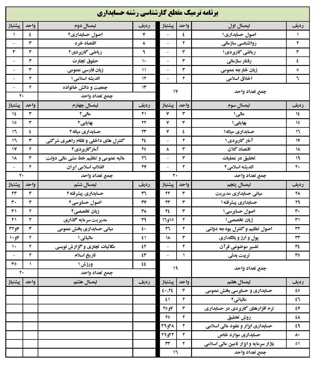 جدول دروس ترمیک رشته حسابداری (بدون گرایش) ورودی ۱۴۰۳ به بعد