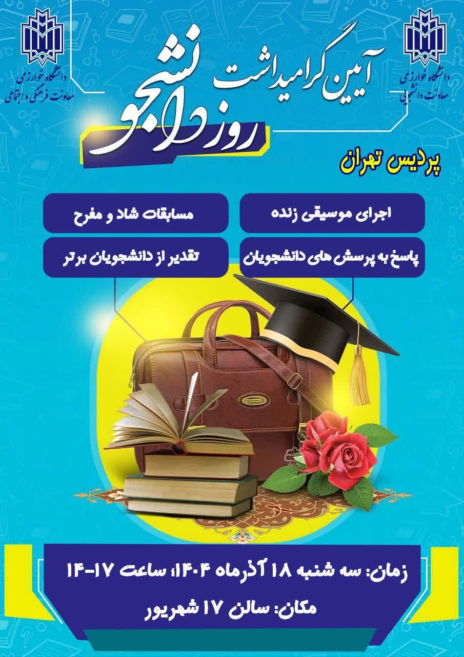 به اطلاع می‌رساند به مناسبت فرارسیدن ۱۶ آذر روز دانشجو، برنامه‌ای ویژه با هدف بزرگداشت و تکریم مقام دانشجو برگزار می‌شود لذا جهت حضور حداکثری دانشجویان در مراسم، کلاس های درس وقت سوم و چهارم در روز سه شنبه۱۴۰۴/۹/۱۸ در واحد تهران تعطیل خواهد بود.