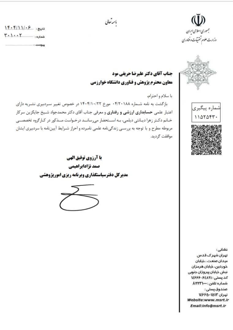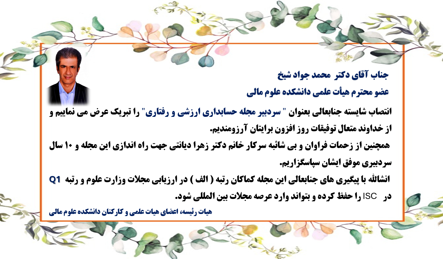 تبریک به جناب آقای دکتر شیخ بعنوان سردبیر مجله حسابداری ارزشی و رفتاری