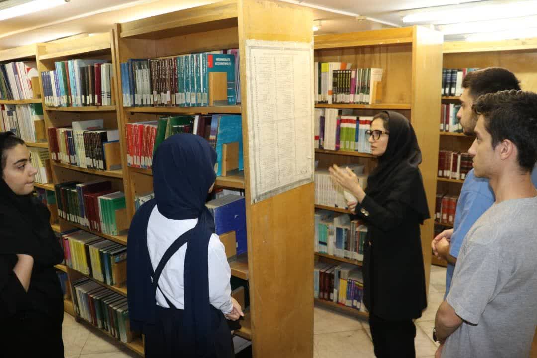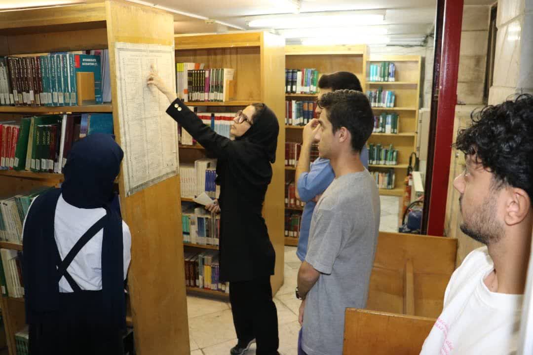 در ادامه، بازدید حضوری از کتابخانه دانشکده انجام گرفت و دانشجویان ضمن آشنایی با فضای کتابخانه، با روش جست‌وجوی منابع و رده‌بندی موضوعی کتاب‌ها نیز آشنا شدند.